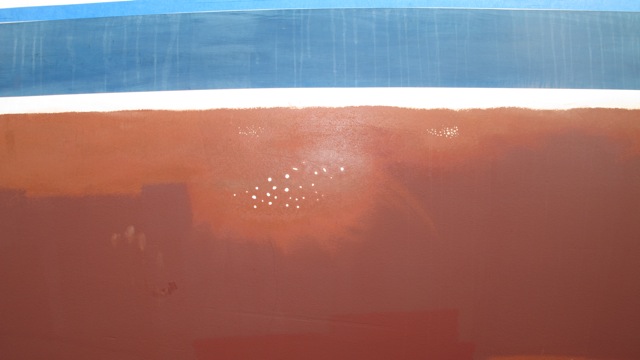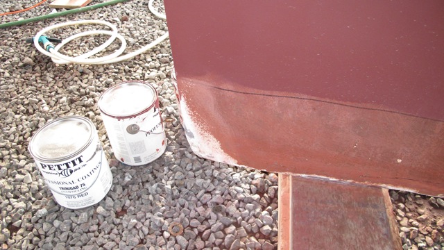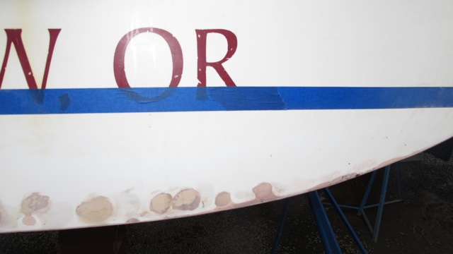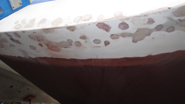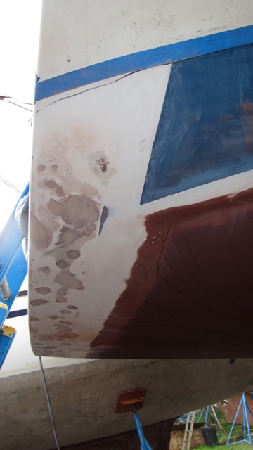 the rain paused and i got going sanding while aimee headed off for the final final parts run. we pretty much sanded under the boat on and off all day. finally it just unloaded on us and we walked to the shower getting totally soaked. no need for a towel!