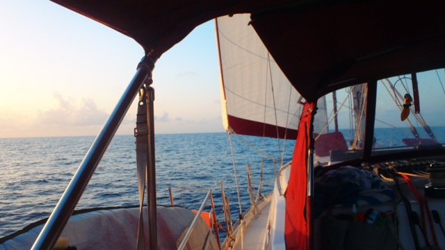 after a few days of partying in grenada and after another dingy engine was stollen i decided it was time to get out of dodge. i got under way on 6 sept on what would turn out to be one of the most relaxing solo passages i have ever done. finally pleasant 15 kt trade winds smooth seas and perfect temperature. i even cranked out about 10 blog entries while working again via bgan.
